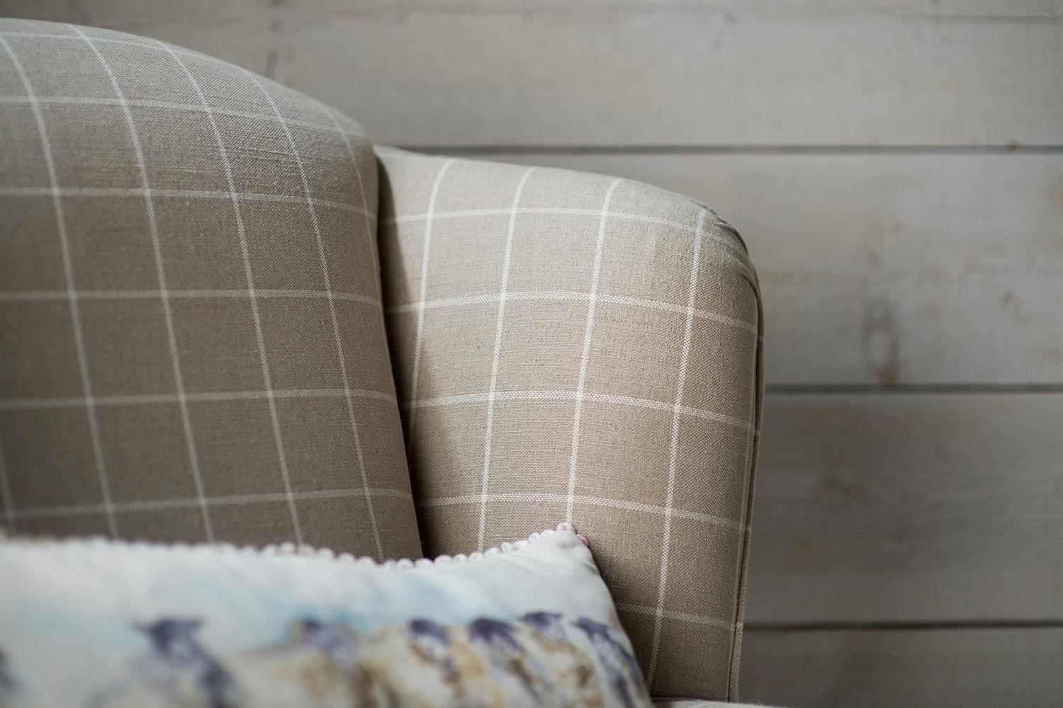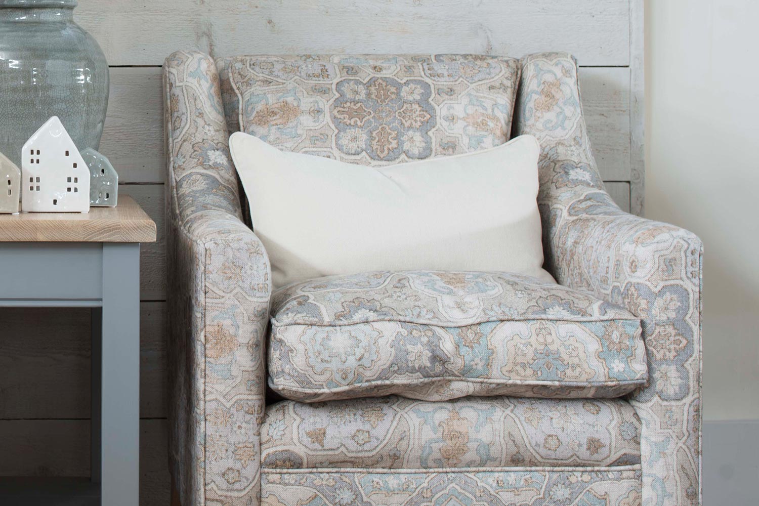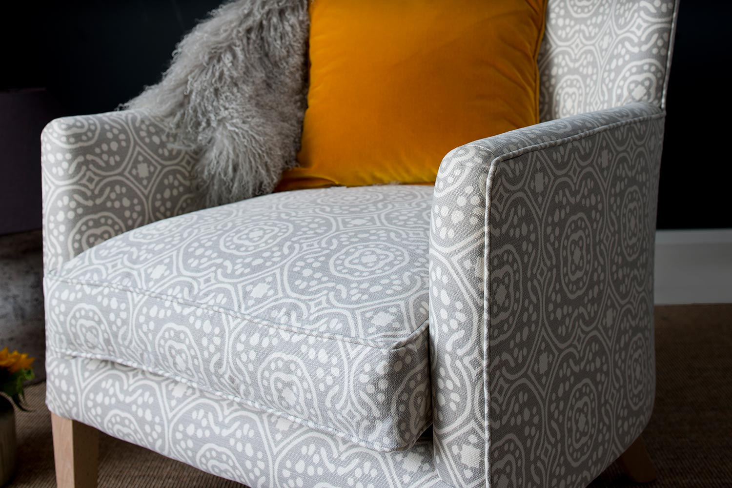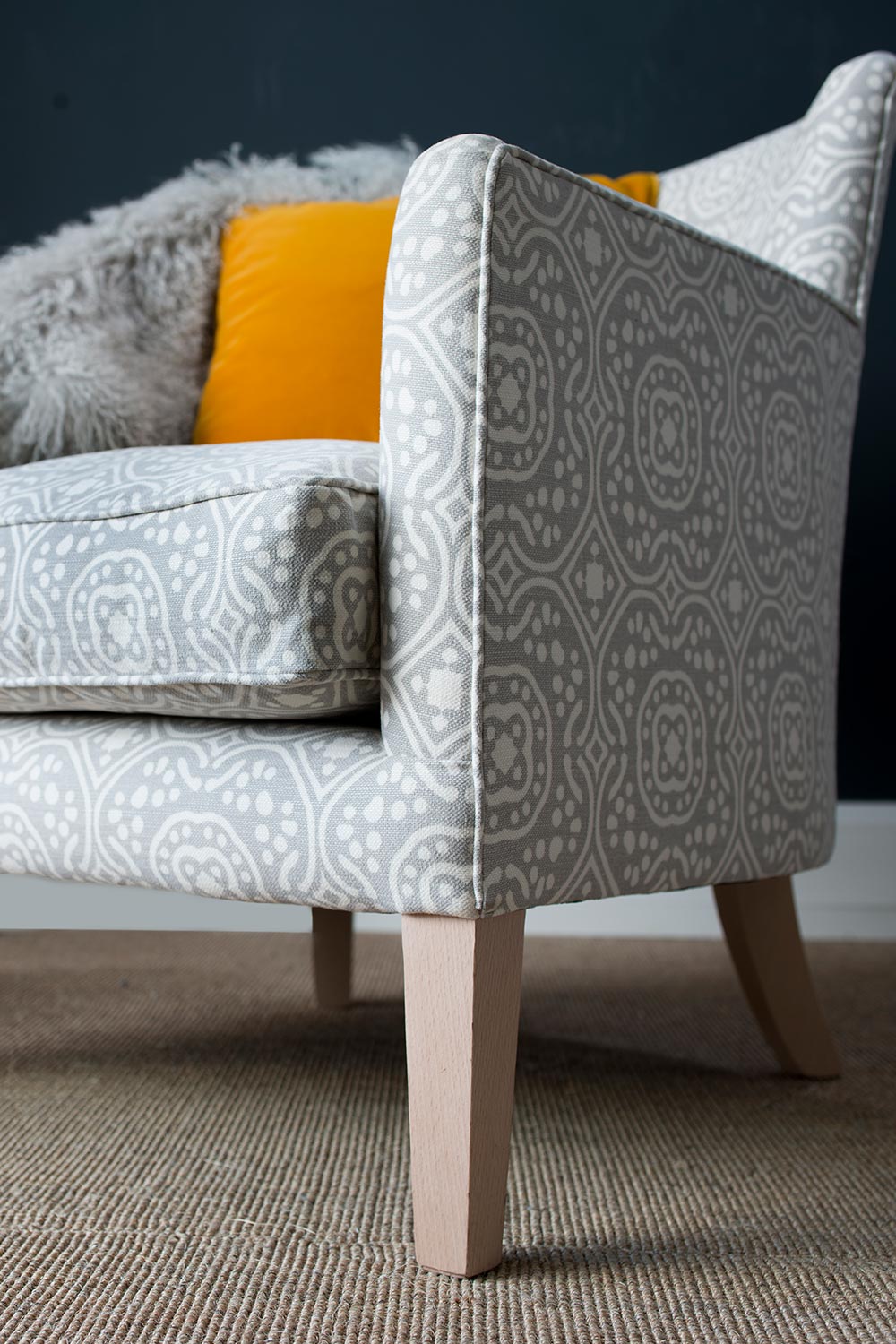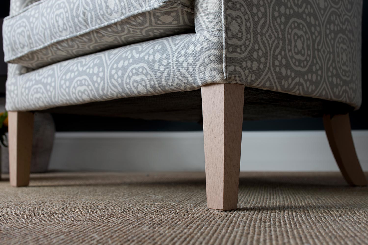 Like our sofas, we have a selection of chair sizes; with varying options on back cushions, seat fillings, arm shapes, feet and skirts, along with over 10,000 upholstery fabrics for you to choose from (surcharge applicable on some fabrics). The choice is endless, so your armchair can be totally unique to you. Footstools are made to measure. All our frames are made from solid hardwood.