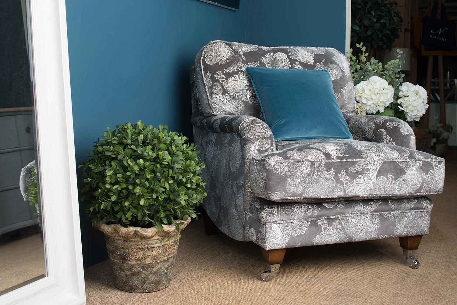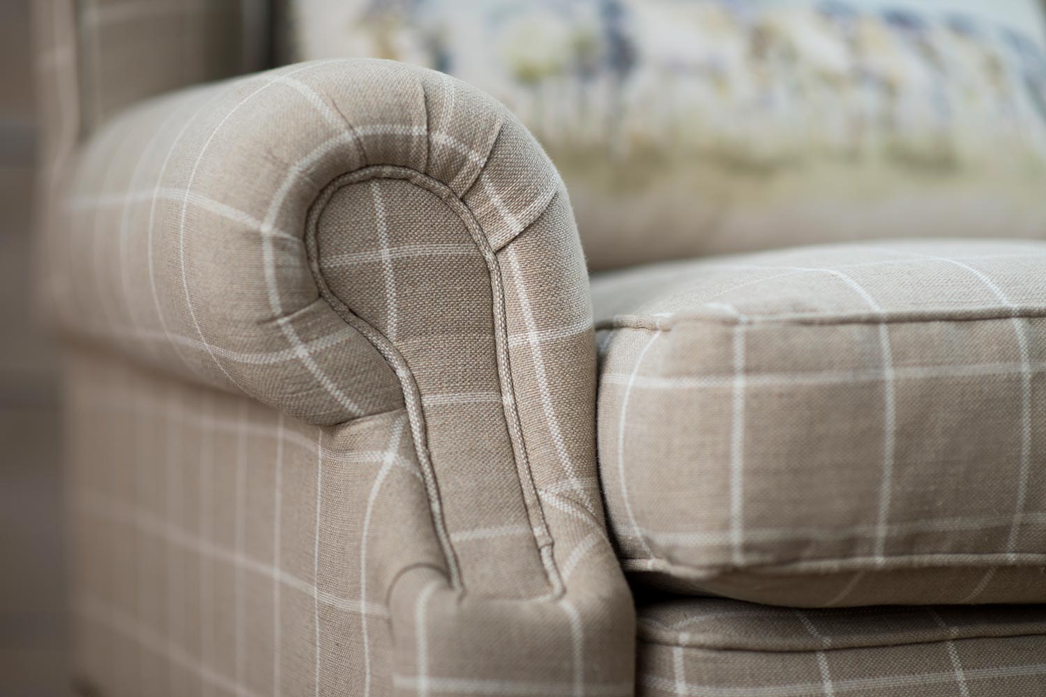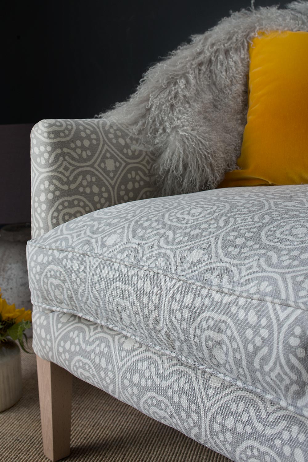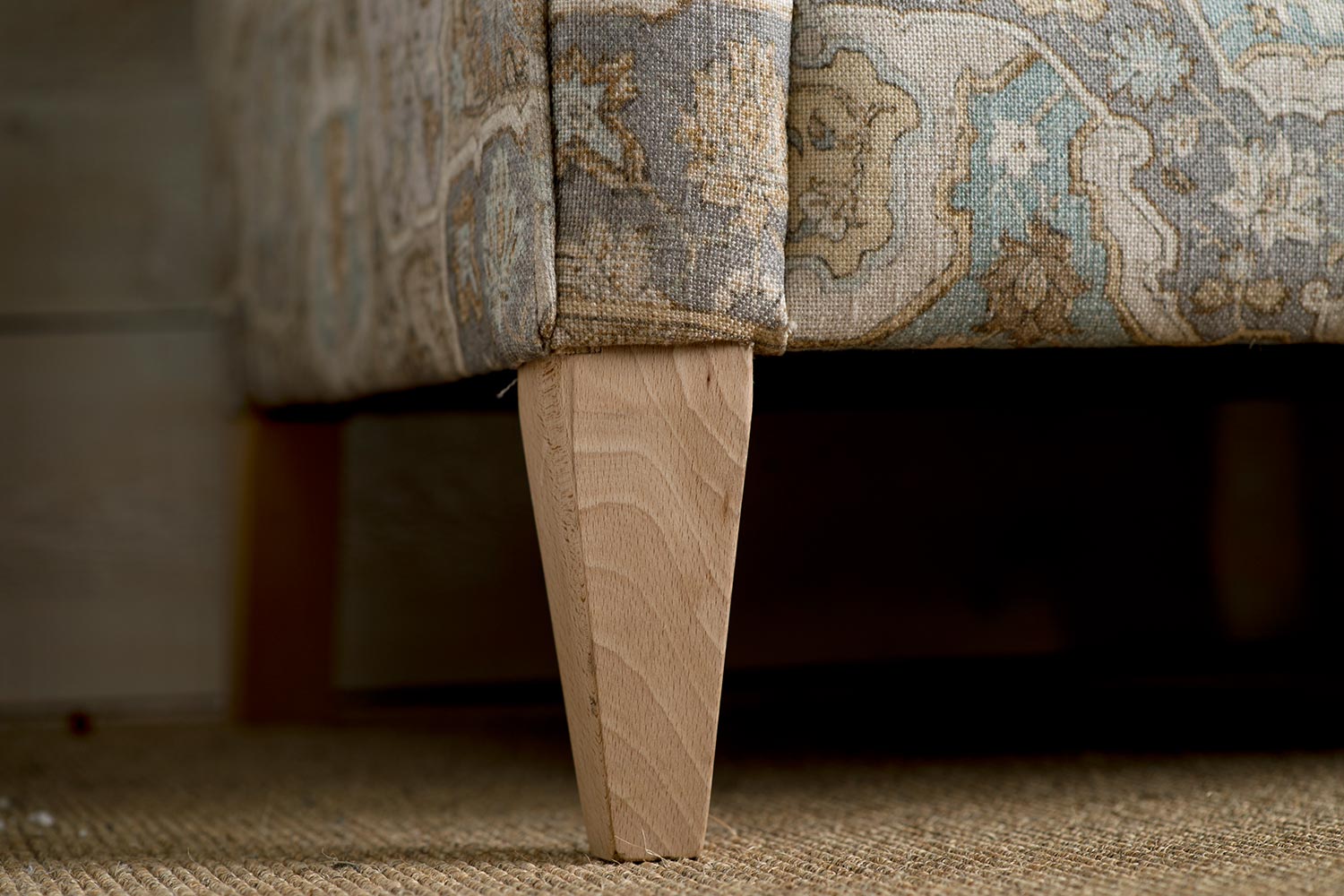Like our sofas, we have a selection of chair sizes; with varying options on back cushions, seat fillings, arm shapes, feet and skirts, along with over 10,000 upholstery fabrics for you to choose from (surcharge applicable on some fabrics). The choice is endless, so your armchair can be totally unique to you. Footstools are made to measure. All our frames are made from solid hardwood.