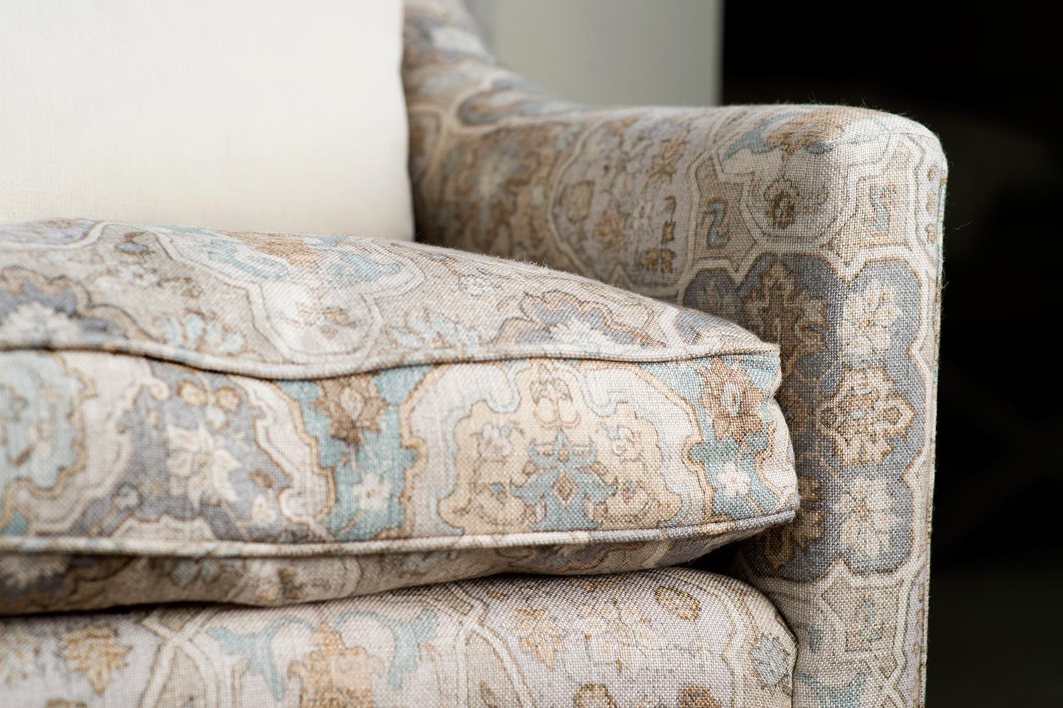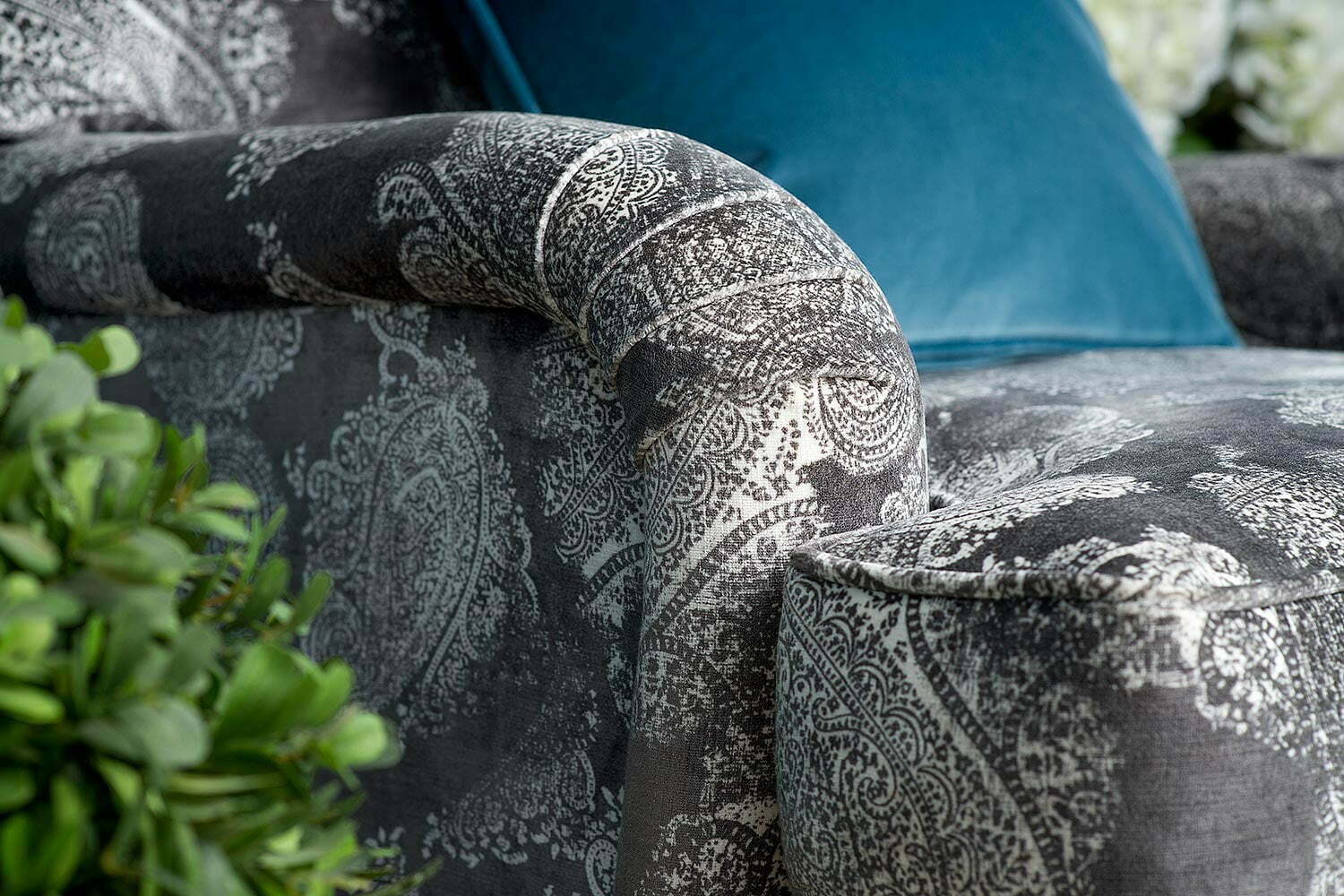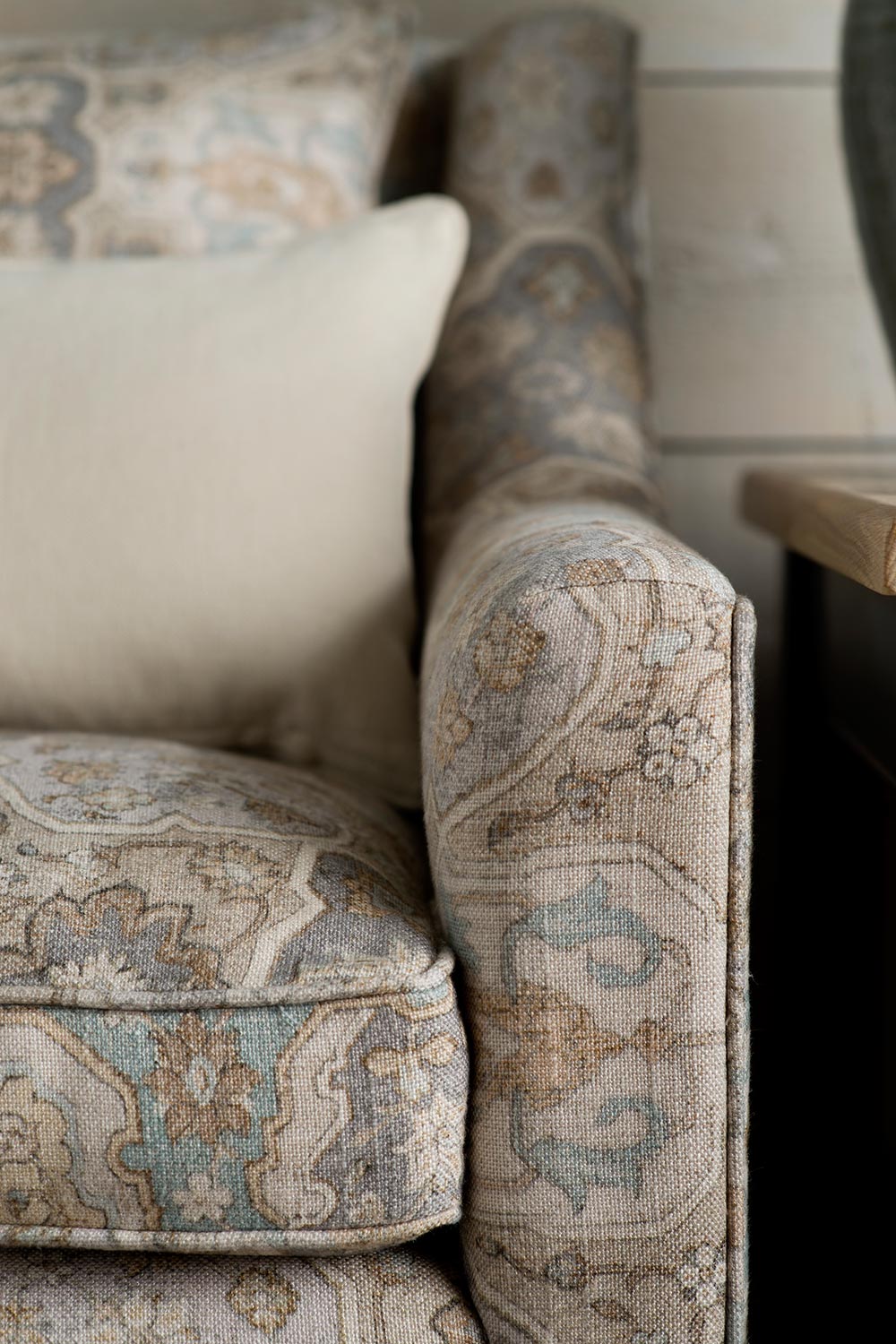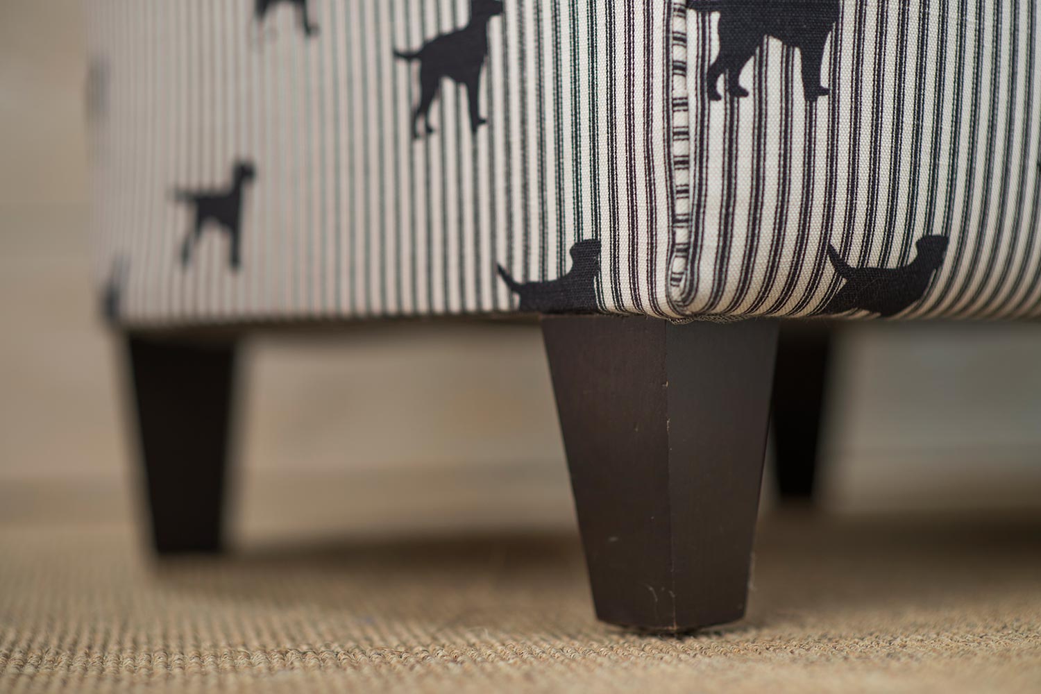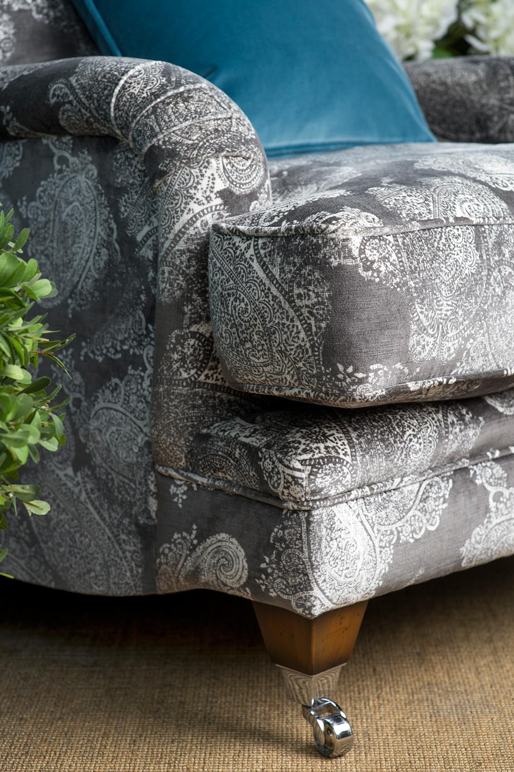 Like our sofas, we have a selection of chair sizes; with varying options on back cushions, seat fillings, arm shapes, feet and skirts, along with over 10,000 upholstery fabrics for you to choose from (surcharge applicable on some fabrics). The choice is endless, so your armchair can be totally unique to you. Footstools are made to measure. All our frames are made from solid hardwood.