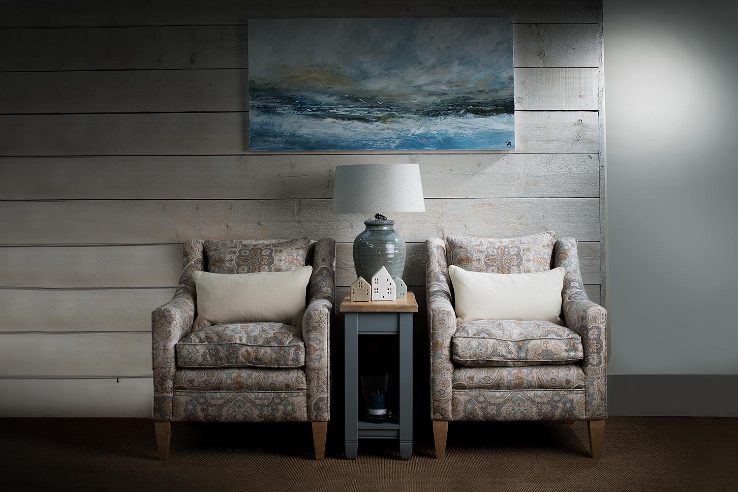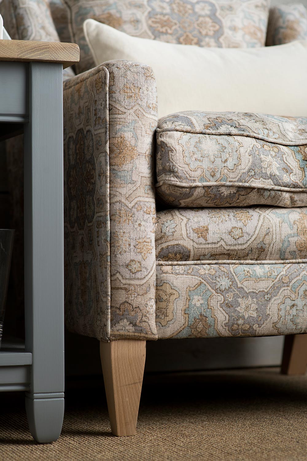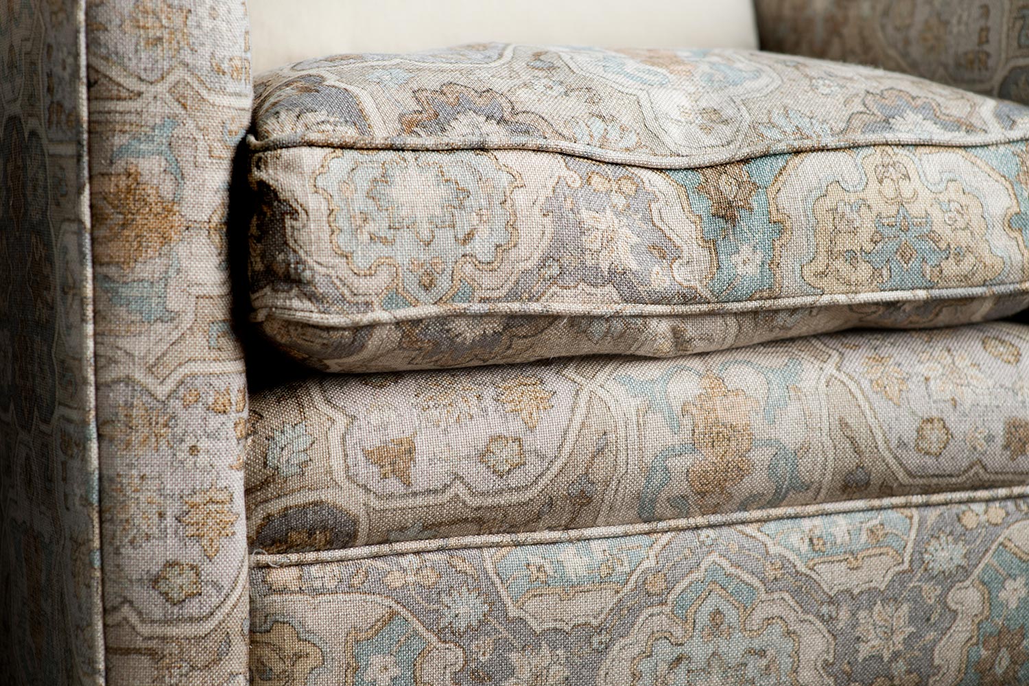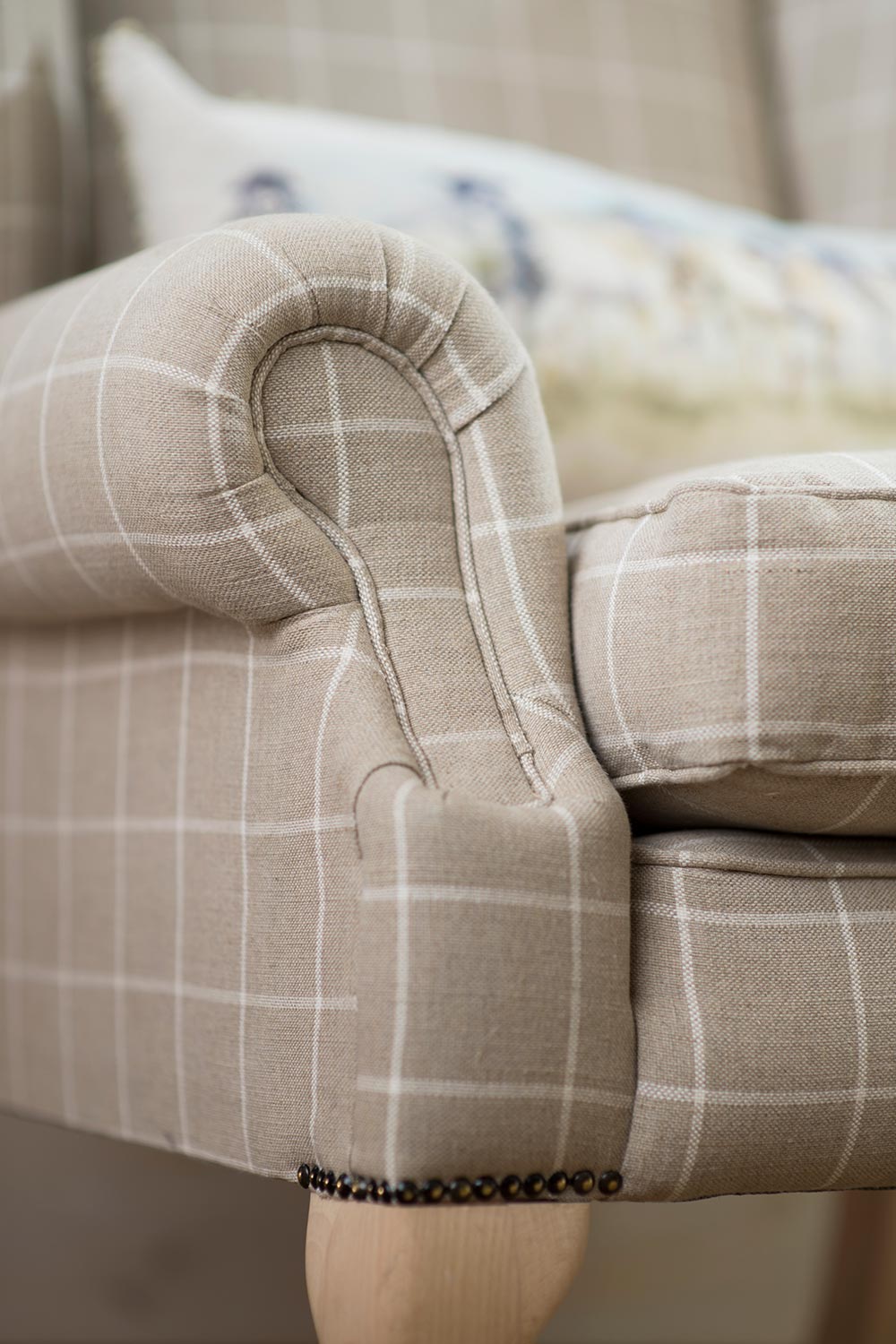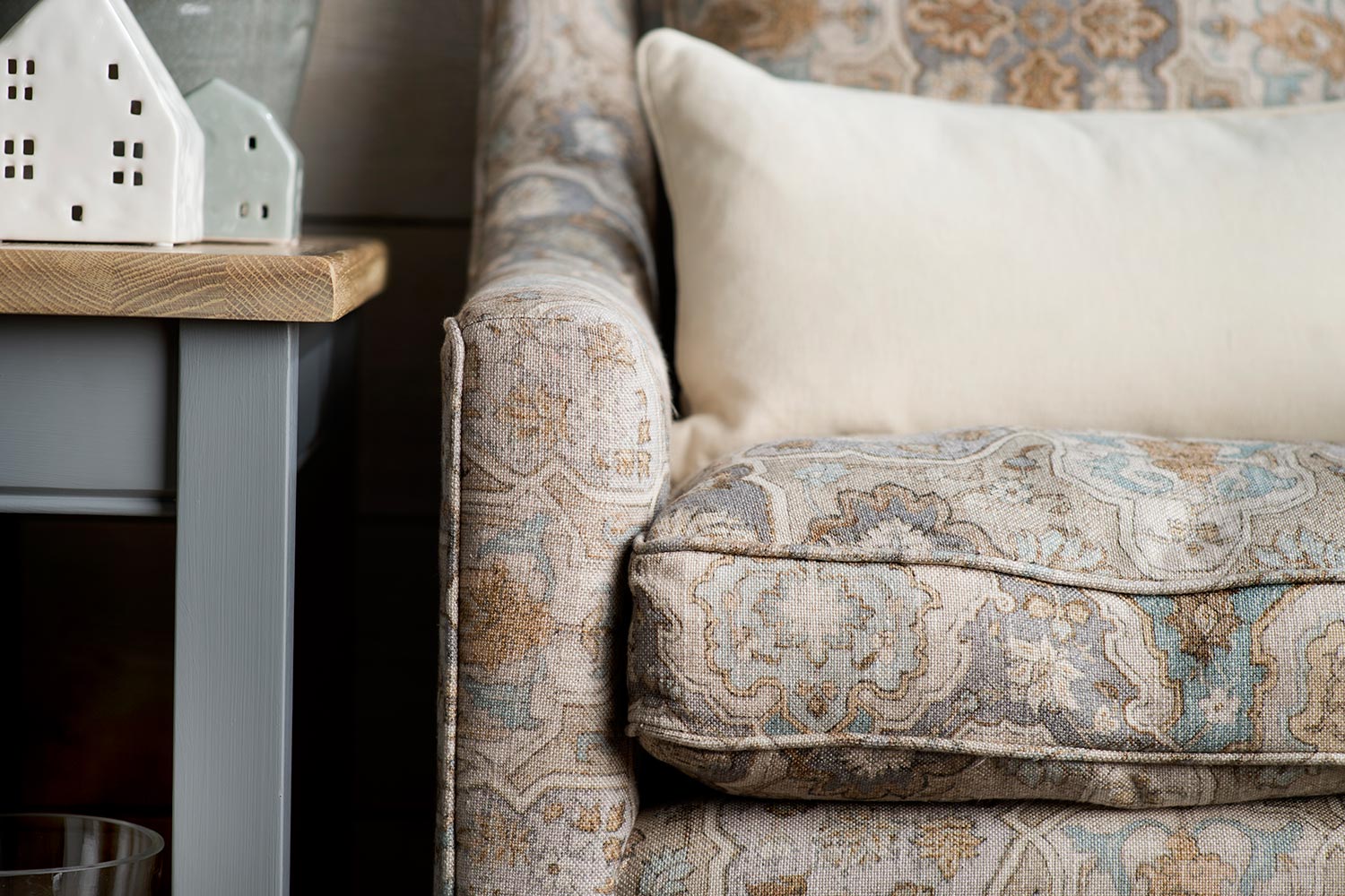 Like our sofas, we have a selection of chair sizes; with varying options on back cushions, seat fillings, arm shapes, feet and skirts, along with over 10,000 upholstery fabrics for you to choose from (surcharge applicable on some fabrics). The choice is endless, so your armchair can be totally unique to you. Footstools are made to measure. All our frames are made from solid hardwood.